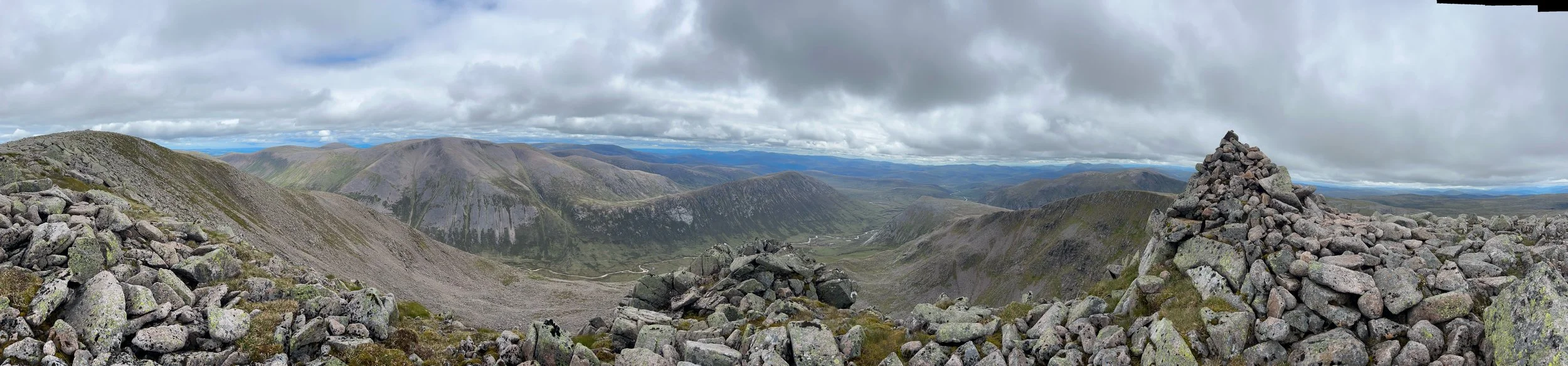 Putting my wet boots back on, I headed up to the Devils Point (1004m), leaving my rucksack at the col so I could nip up quickly, before retracing my steps as my route would take me in the opposite direction to Stob Coire an t-Saighdeir (1213m), which was a bit of a slog, and then on to Cairn Toul (1291m), which was my favourite of the day. The peak being covered with boulders, it is basically a big cairn to clamber over. I was very happy that it wasn’t raining and misty for this section.